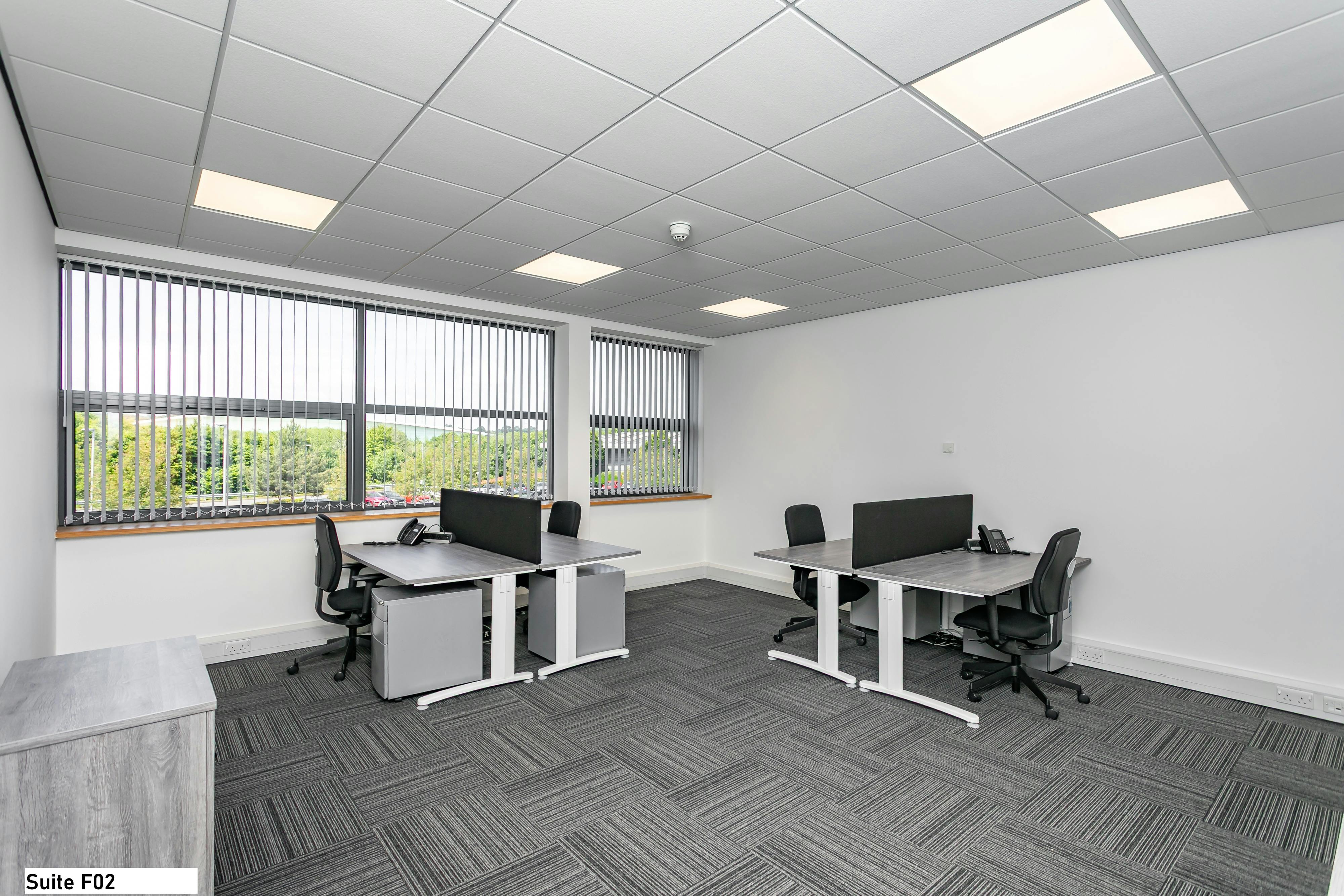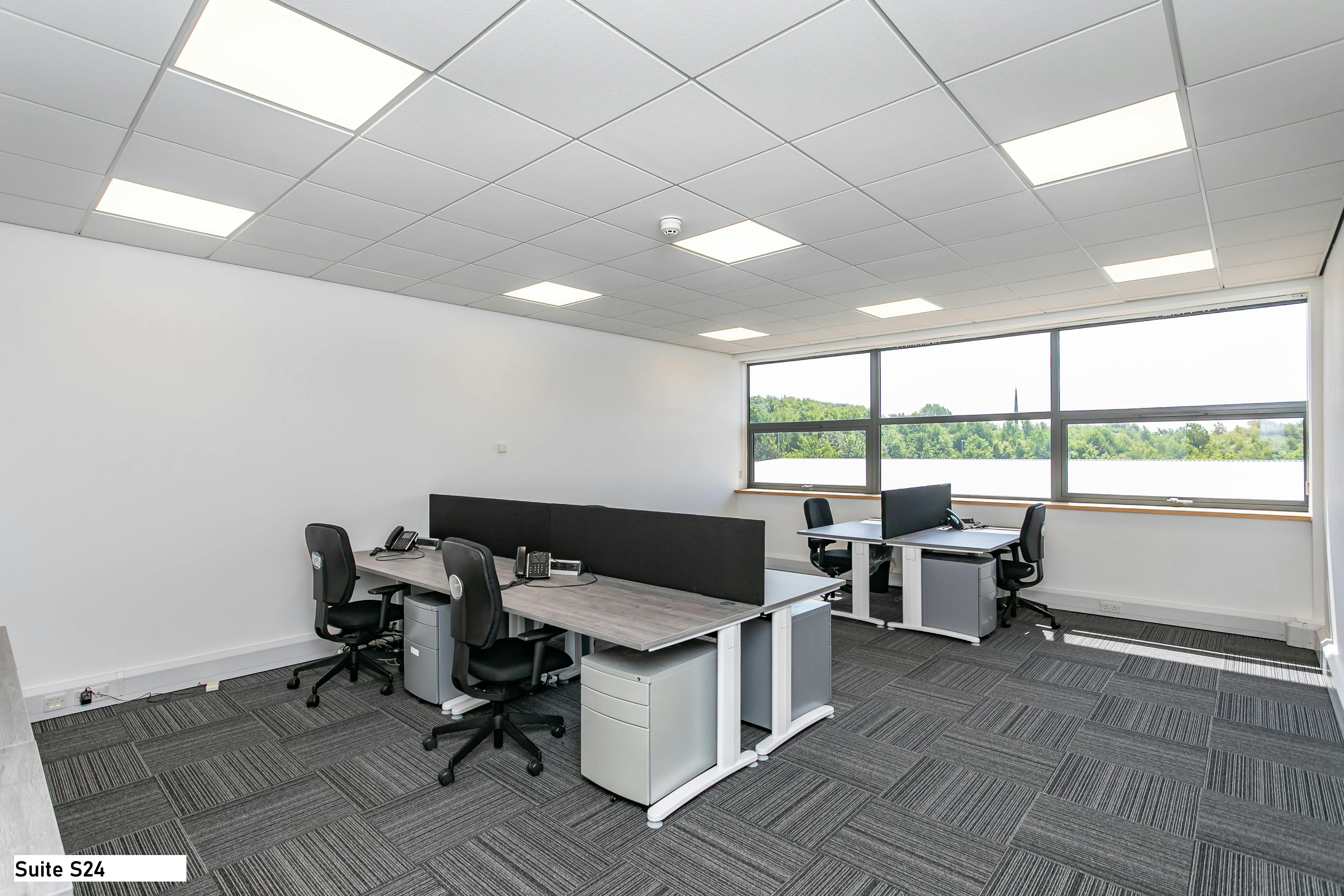 The property comprises a number of furnished office suites in various sizes arranged over ground, first and second floor within an impressive headquarter style office building. The property is managed by an “on site” company ensuring a high level of security and efficiency when dealing with any issues. The suites are accessed off a light and open shared reception area via a secure fob entry system and each suite briefly benefits from the following features: